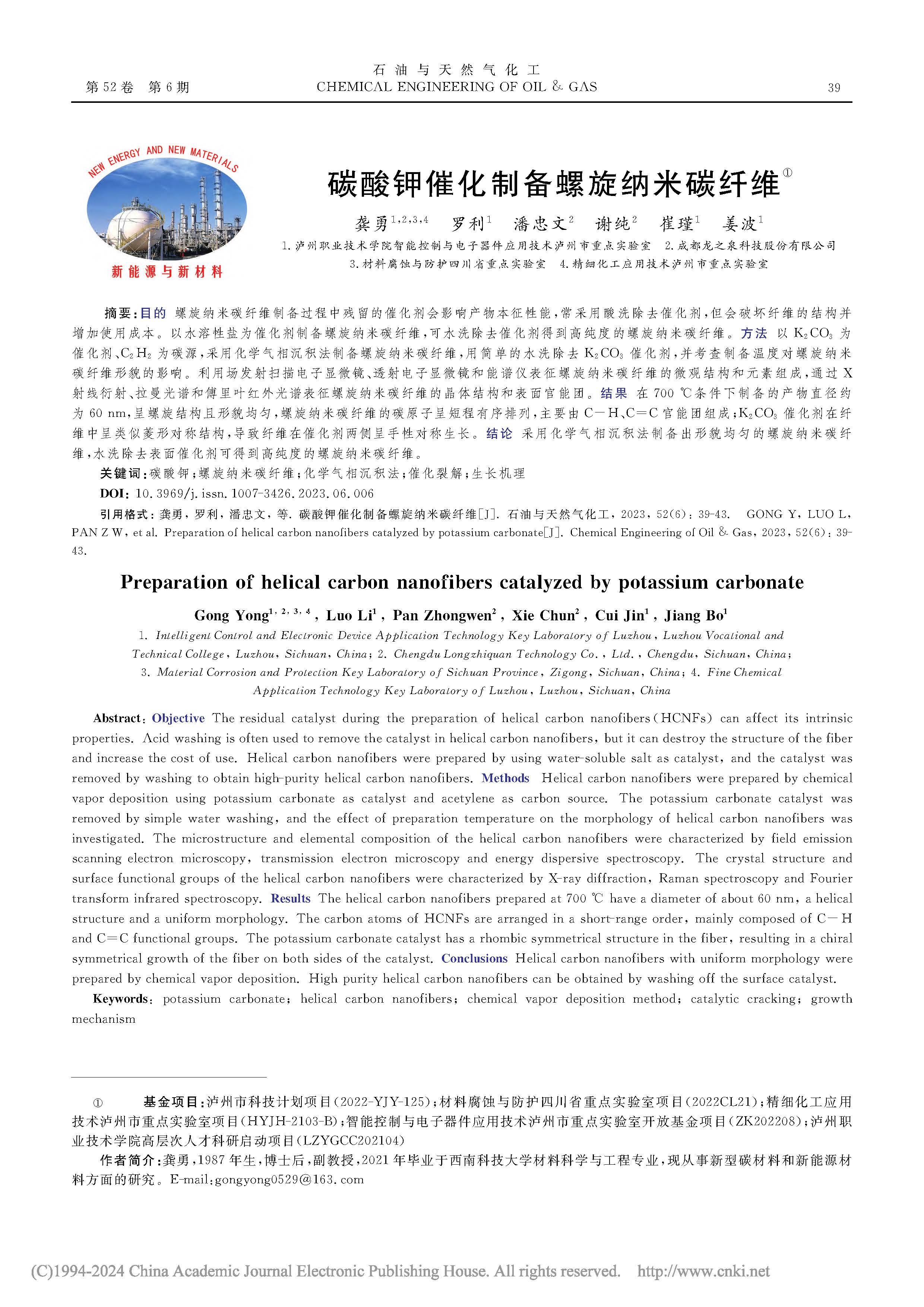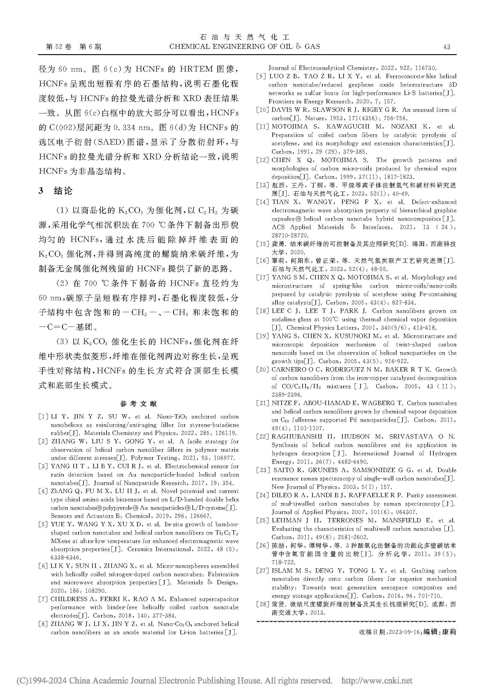 公司发表论文---《碳酸钾催化制备螺旋纳米碳纤维》, 刊登于《石油与天然气化工》